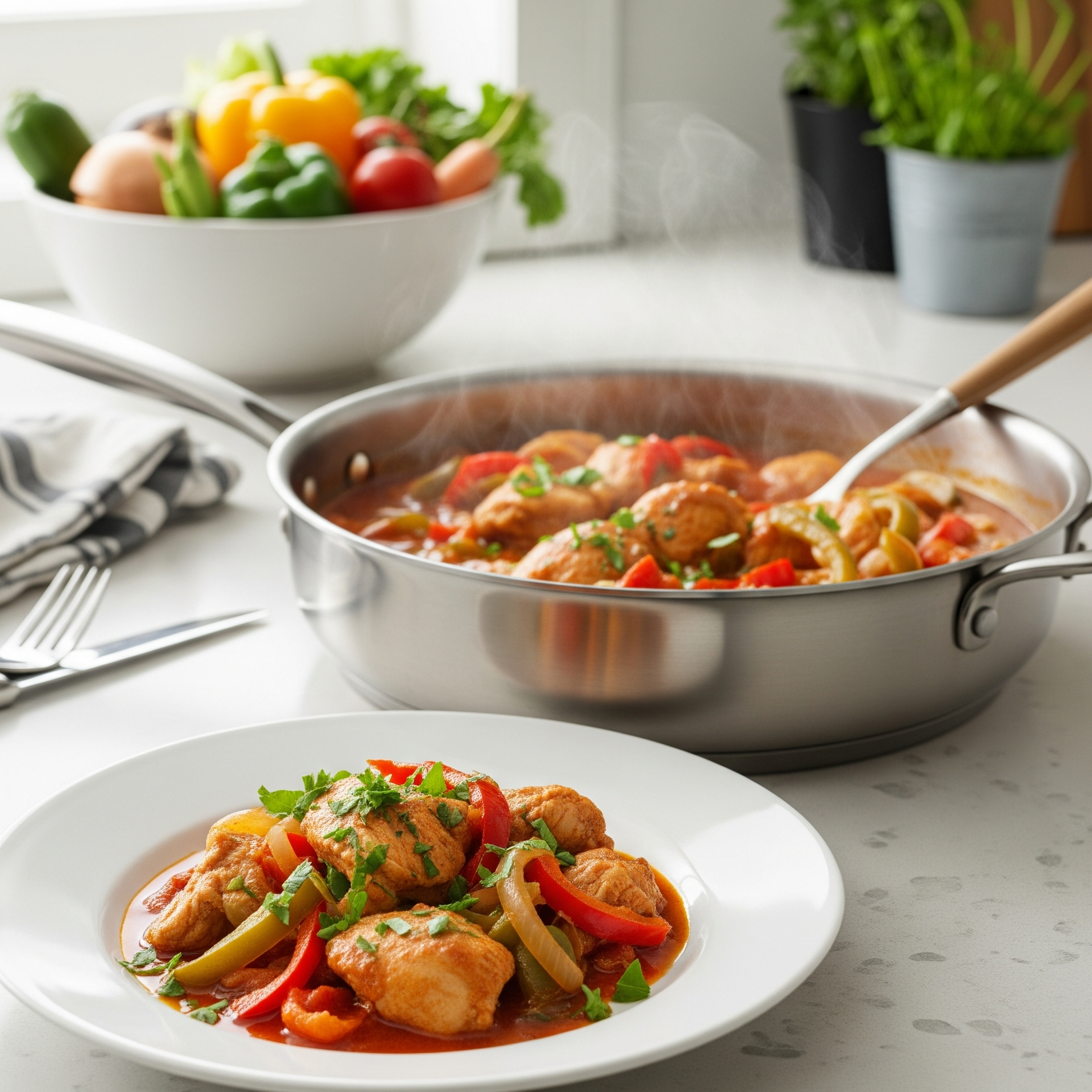 Tocăniță de pui cu ardei și ceapă – gustoasă și fragedă